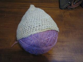 近くにあった毛糸玉にかぶせてみました。